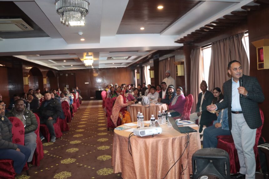 विश्व बैंकबाट प्राप्त भएको आदिवासी जनजाति र स्थानीय समुदायको लागि समर्पित अनुदान संयन्त्र परियोजनाबारे जानकारी गराउने उद्देश्यले आयोजित कार्यशालामा डिजिएम टिम लिडर डा रत्न कार्की, सामाजिक संरक्षण विज्ञ शौरभा सुवेदी, वातावरण विज्ञ रिणा संग्रौलाले सहजिकरण गरेको थिए ।