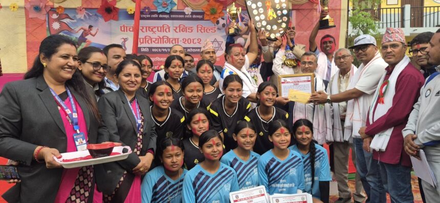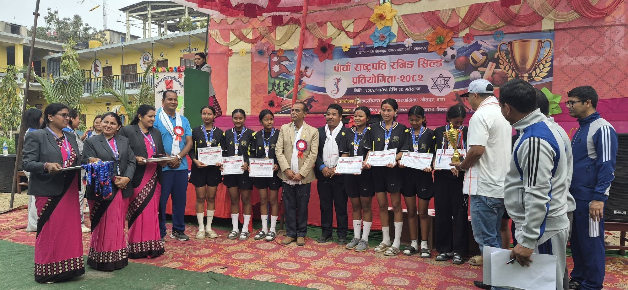 बारा । जीतपुर सिमरा उपमहानगरले आयोजना गरेको राष्ट्रपति रनिङ शिल्ड प्रतियोगिताको उपाधी यसवर्ष राष्ट्रिय बिभुती शिक्षा सदन डुमरवानाले प्राप्त गरेको छ । सो विद्यालय २३ स्वर्ण, ९ रजत र ४ कास्य पदक सहित प्रथम भएको हो । यससँगै सो विद्यालयले लगातार चौथोपटक प्रथम उपाधी जितेको बनेको हो । मंगलवारदेखि सुरु भएको राष्ट्रपति रनिङ शिल्ड प्रतियोगिता आज समापन भएको हो ।