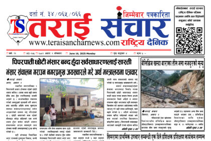 आज २०८२ आषाढ २ गतेको तराई सञ्चार राष्ट्रिय दैनिक पढ्नु भयो ?