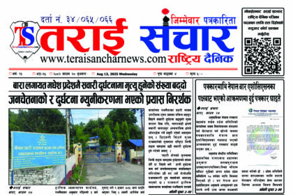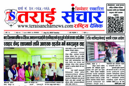 आज २०८२ श्राबण १९ गतेको तराई सञ्चार राष्ट्रिय दैनिक पढ्नु भयो ?