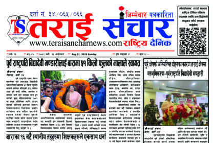 आज २०८२ श्राबण २८ गतेको तराई सञ्चार राष्ट्रिय दैनिक पढ्नु भयो ?