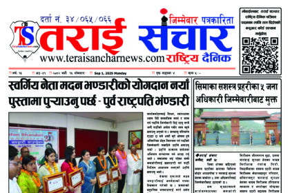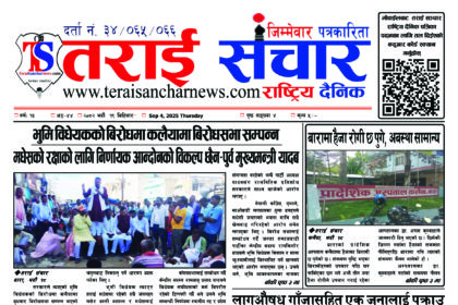 आज २०८२ भाद्र १९ गतेको तराई सञ्चार राष्ट्रिय दैनिक पढ्नु भयो ?